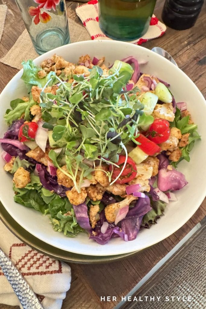 - going out to eat can be trickier, but it’s manageable. I order various simple salads, guacamole, sides of steamed veggies with olive oil salt and pepper, salmon and grilled veggies (if you eat fish)