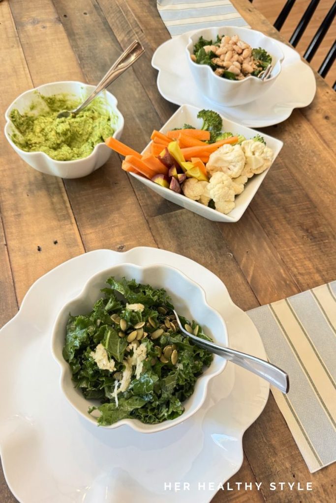 I choose to skip the starchy beans and lentils for awhile as the sugar in beans can feed Candida. Eventually I’ll introduce back in lentils first, but I’ll start with small amounts and see how I feel. Lentils and beans are a big part of my diet normally, so as soon as I tolerate them well enough, they will be back in. I don’t eat meat, but I do eat fish, so I include salmon sometimes for dinner.