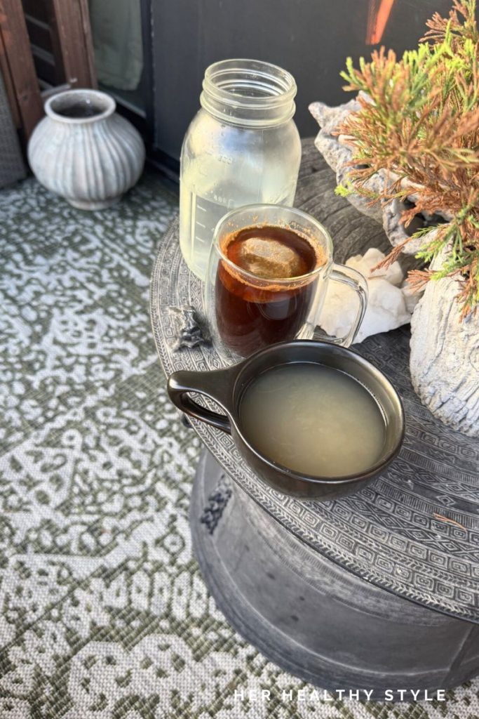 - herbal teas (ginger, fresh thyme tea, chamomile, mint, cinnamon, clove, licorice, pau d’arco)- a small bit of monk fruit powder as a sweetener when I want it